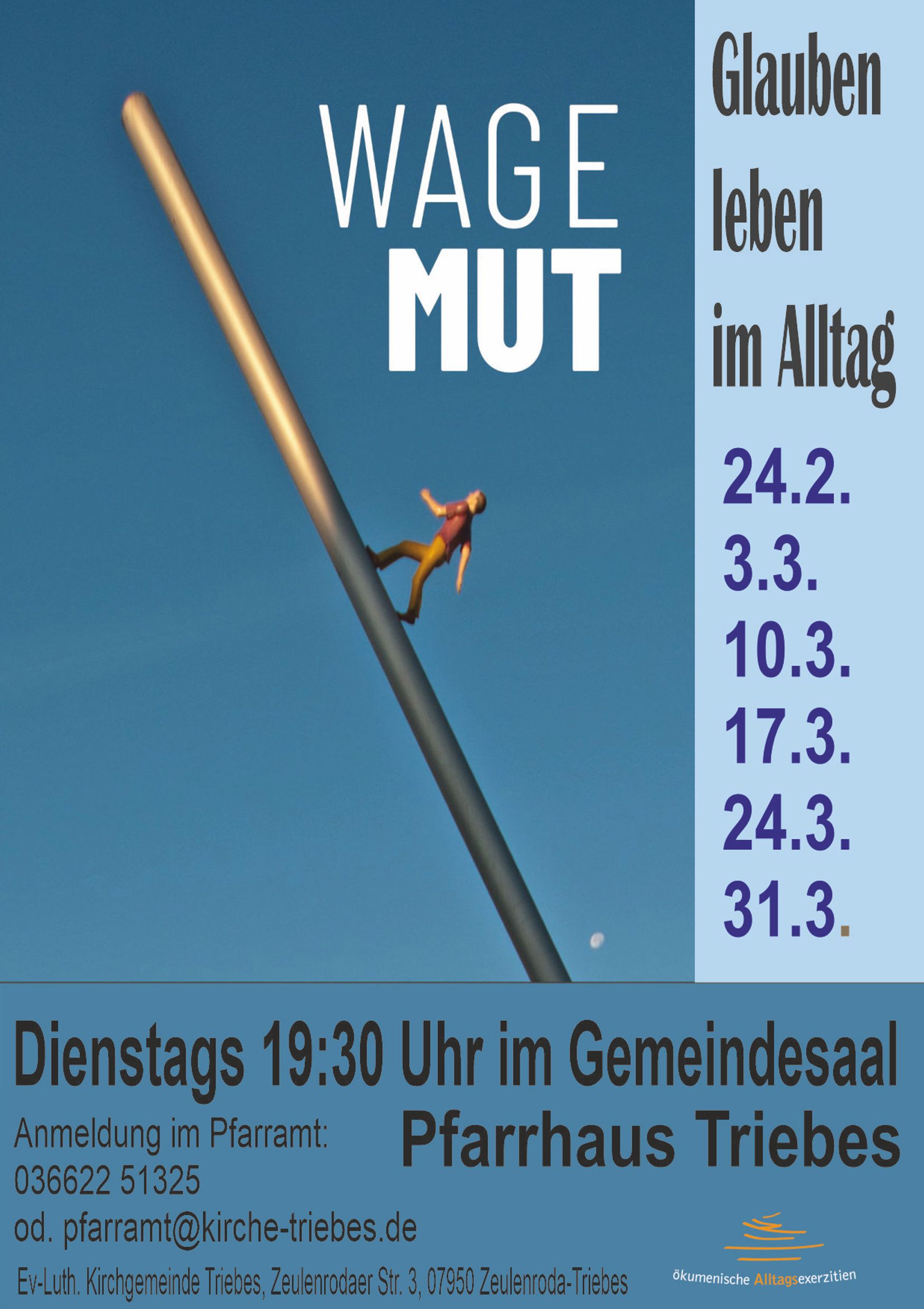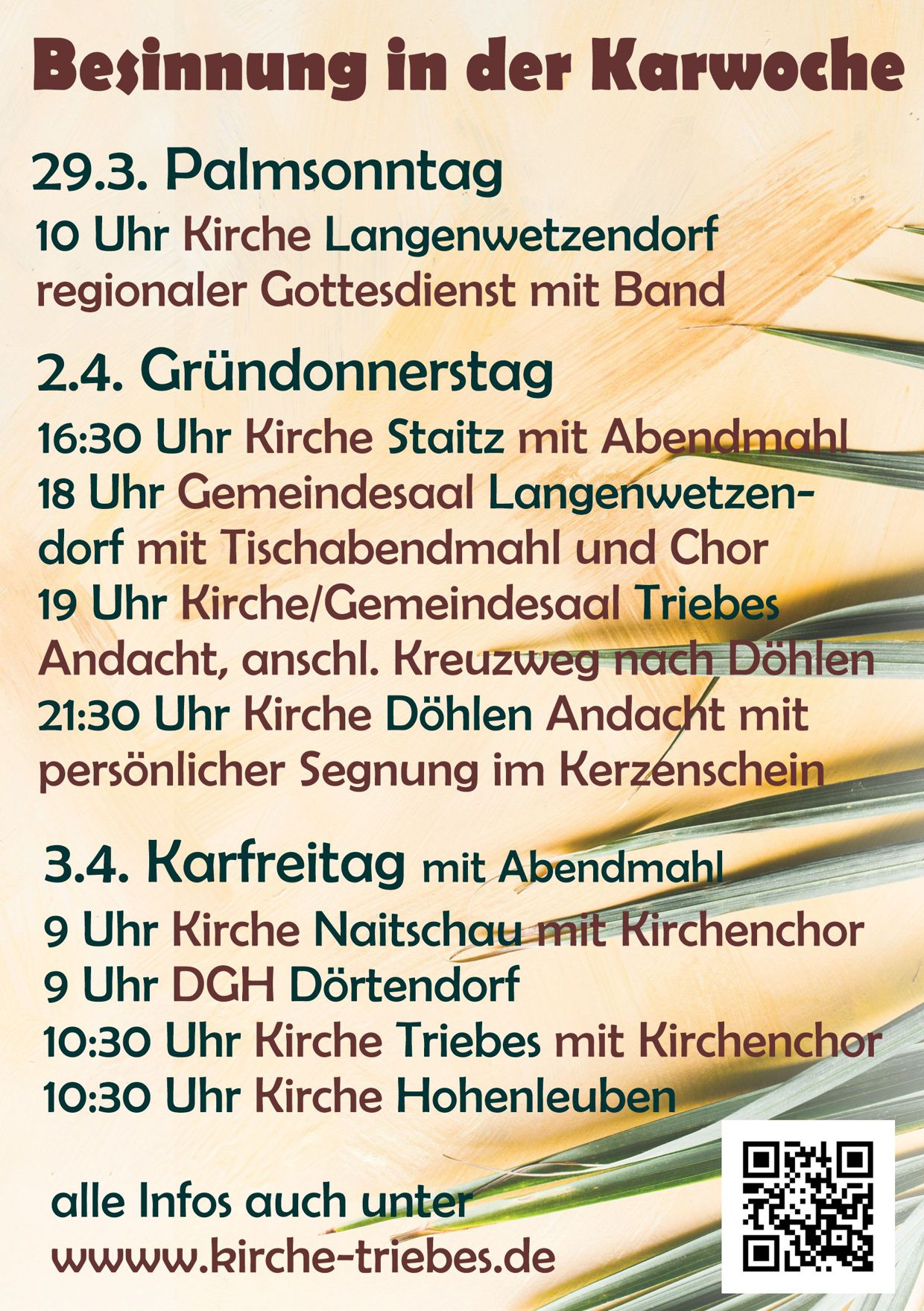 Das Pfarrbüro ist geöffnet und wir sind telefonisch (03662251325) und per Mail (pfarramt@kirche-triebes.de) zu erreichen. Sie können uns anrufen um Gespräche zu vereinbaren oder wenn sie Hilfe benötigen, können wir diese vermitteln.